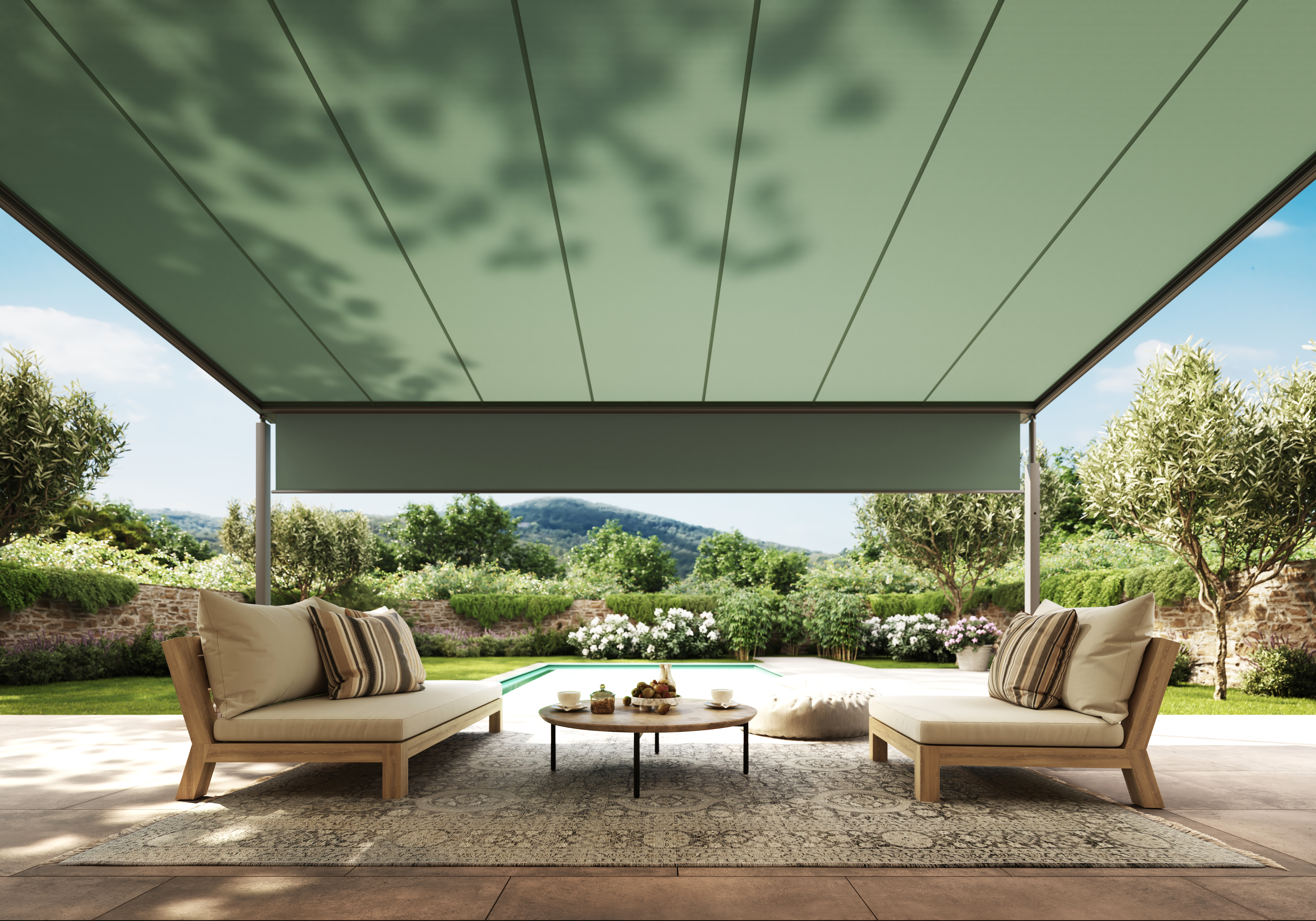 Schutz in vielen Facetten. Pergola-Markisen eignen sich besonders gut dafür, Außenbereiche vor Sonne, Regen und Wind zu schützen. Es lassen sich kleine und große Flächen beschatten. Pergola-Modelle sind besonders windstabil und sicher. Weil sie am Gebäude und zusätzlichen Säulen befestigt sind.